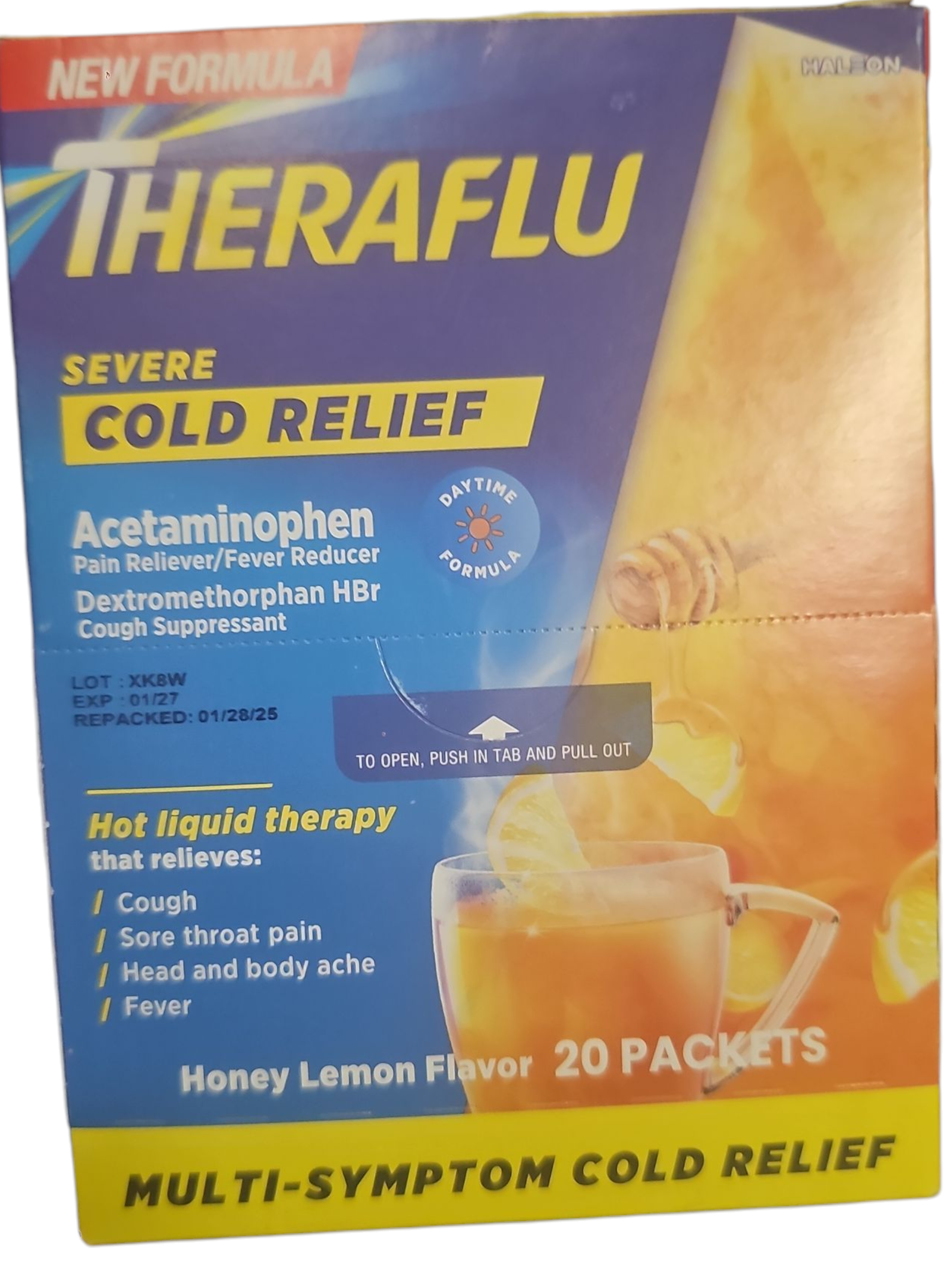 Theraflu Multi-Symptom Severe Cold 6 Packets Tea Infusions Green Tea & Honey Lemon Flavors