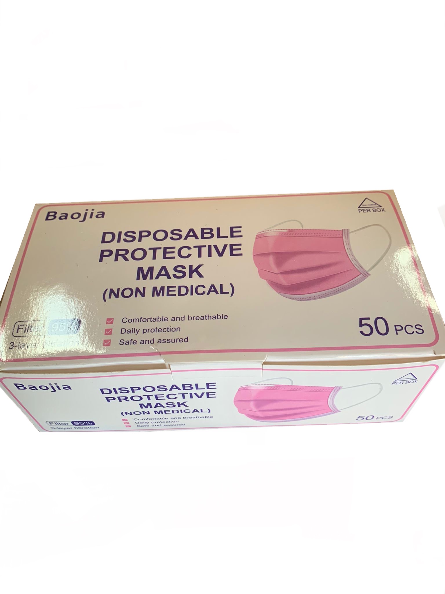 Baojia Filter 95% 3-Layer Filtration Disposable Protective Pink Masks NON-Medical 50 Pcs